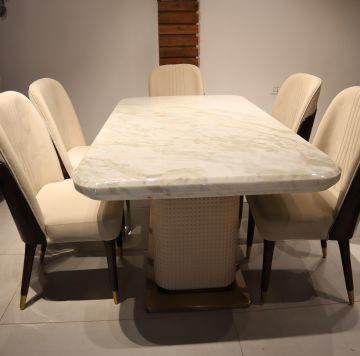Dine in sophistication: Elevate your culinary space with this cachy table.