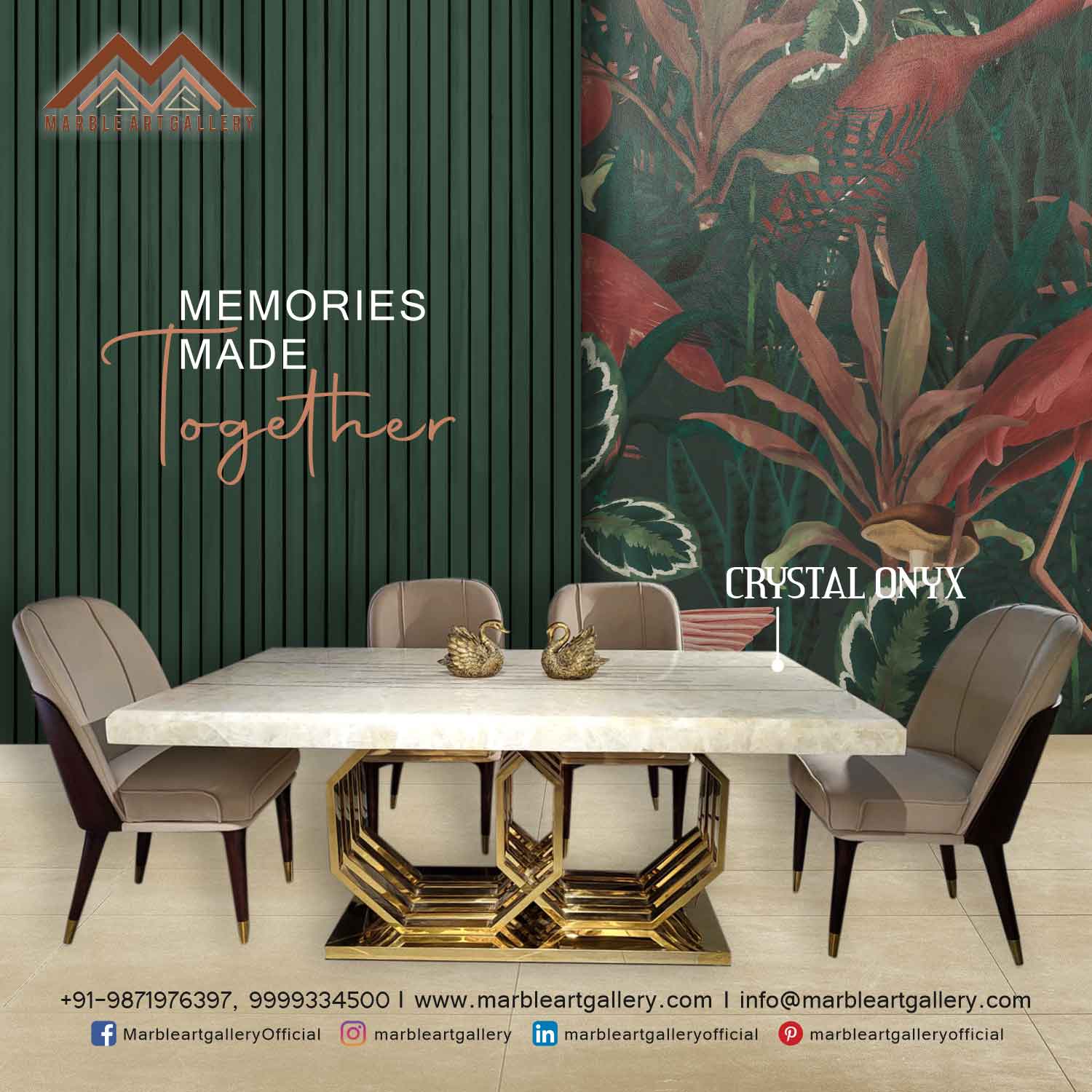 Unforgettable moments await at our dining table adorned with exquisite crystal onyx.