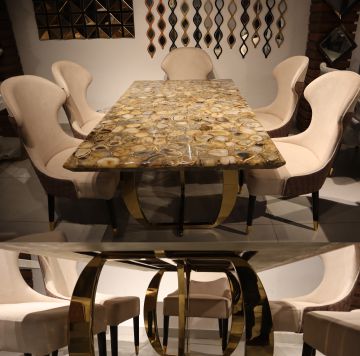 A Taste of Extravagance: Golden Agate with (Metal Gold Finish) Dining Table